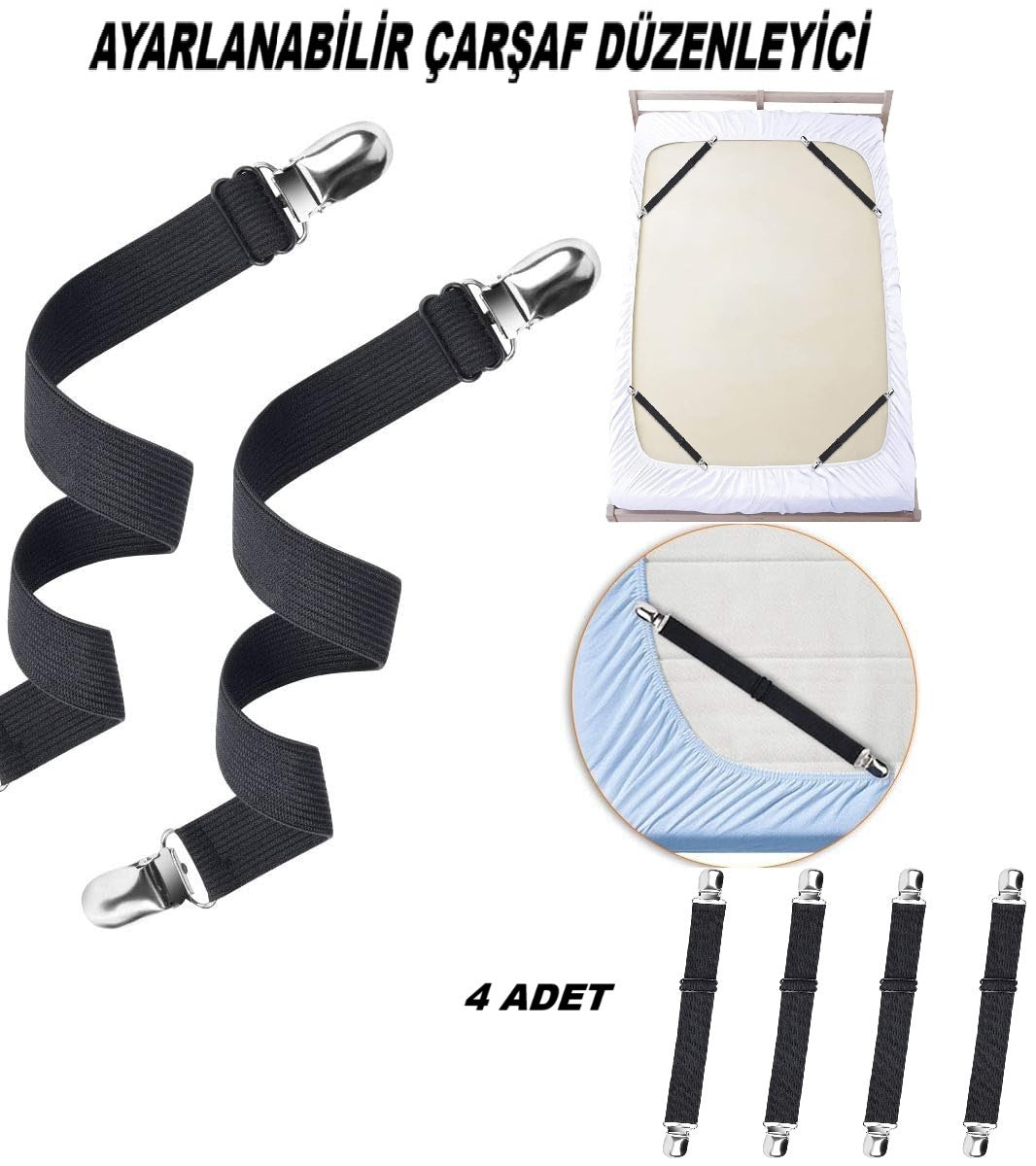 Ayarlanabilir Çarşaf Lastiği, Çarşaf Bağlantı Kayışları, Çarşaf ve Örtü Tutucuları, Örtü Sabitleyici