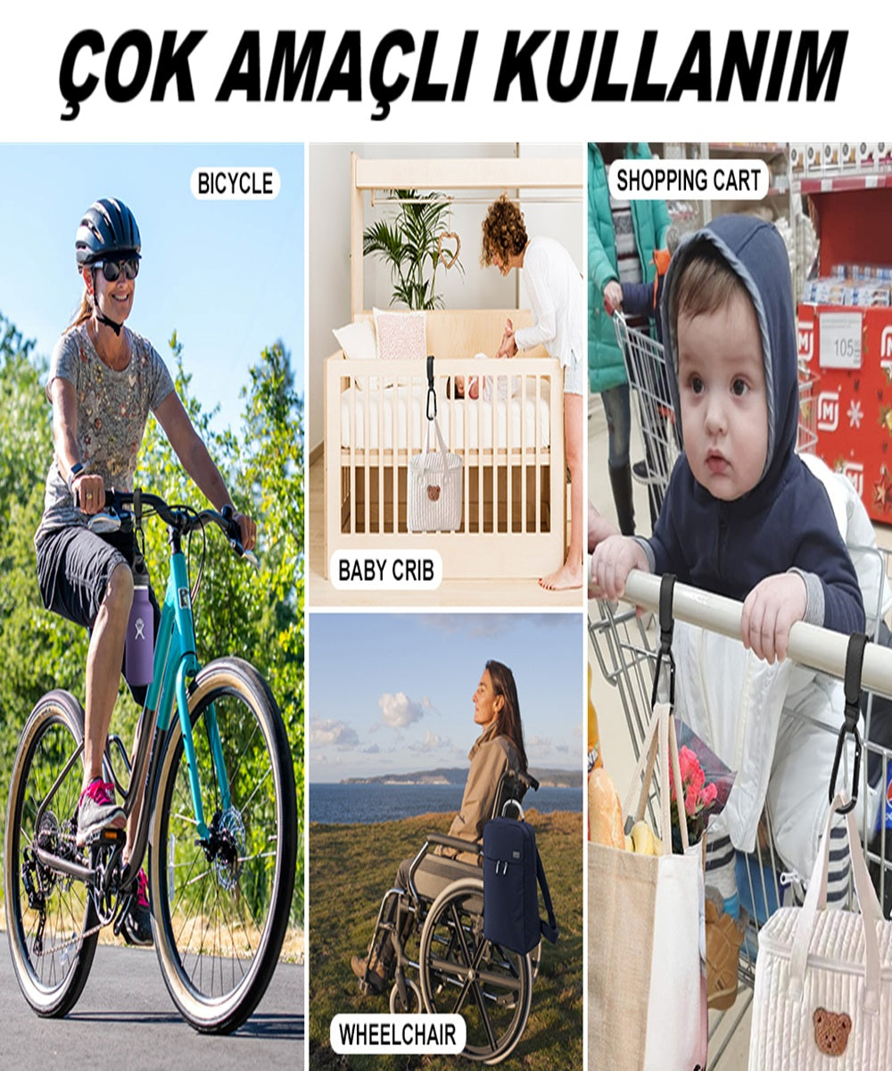 FERDYS Bu bebek arabası kancası, dışarı çıkarken her zaman yanınızda! Çok Amaçlı Askılarımız Bisikletlerden tekerlekli sandalyelere, alışveriş arabalarından araba koltuklarına kadar her yerde. Bebek arabası klipsimiz sayesinde her ortamda elleriniz serbest, eşyalarınız güvende kalabilir, böylece bebeğinize odaklanıp keyifli bir yürüyüşün tadını çıkarabilirsiniz!