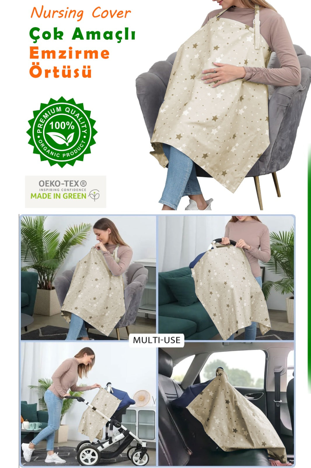 Krem Emzirme Önlüğü, Çok Amaçlı Emzirme Örtüsü, Puset Örtüsü %100 Pamuk